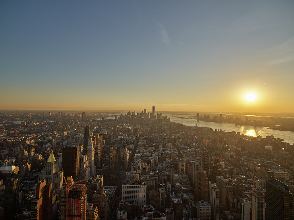 During the blood moon, a Chaos Angel lingers on the ledge of a high-rise.